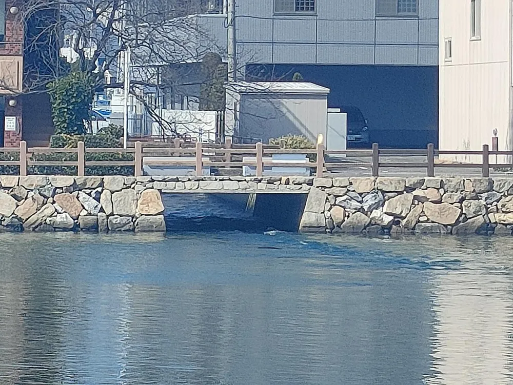最後に、今治城最大の特色である海城としての特徴と堀について改めて触れていきたい。一般的な城の堀は雨水や地下水を利用する淡水の堀であることが多いが、そこは海城。海水を直接引き込んだ堀の中央に、まるで浮かぶように今治城は佇んでいる。このため堀の水位は潮の満ち引きによって変化し、訪れる時間帯によって多様な顔を見せる。堀の中にはタイやボラなどの海水魚が生息しており、城の堀とは思えない生態系を構築している。画像:今治城の内堀に海水を引き込んでいる場所の画像